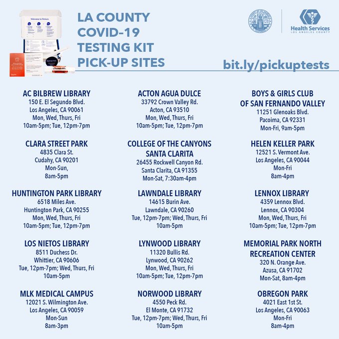 L A County Health Services On Twitter We Ve Expanded Covid 19 Pick Up Testing Kit Locations Across The County See The Flyers For New Locations Or Visit Https T Co J6dzkojn9m For More Information Https T Co Pfocpfdeqc Twitter